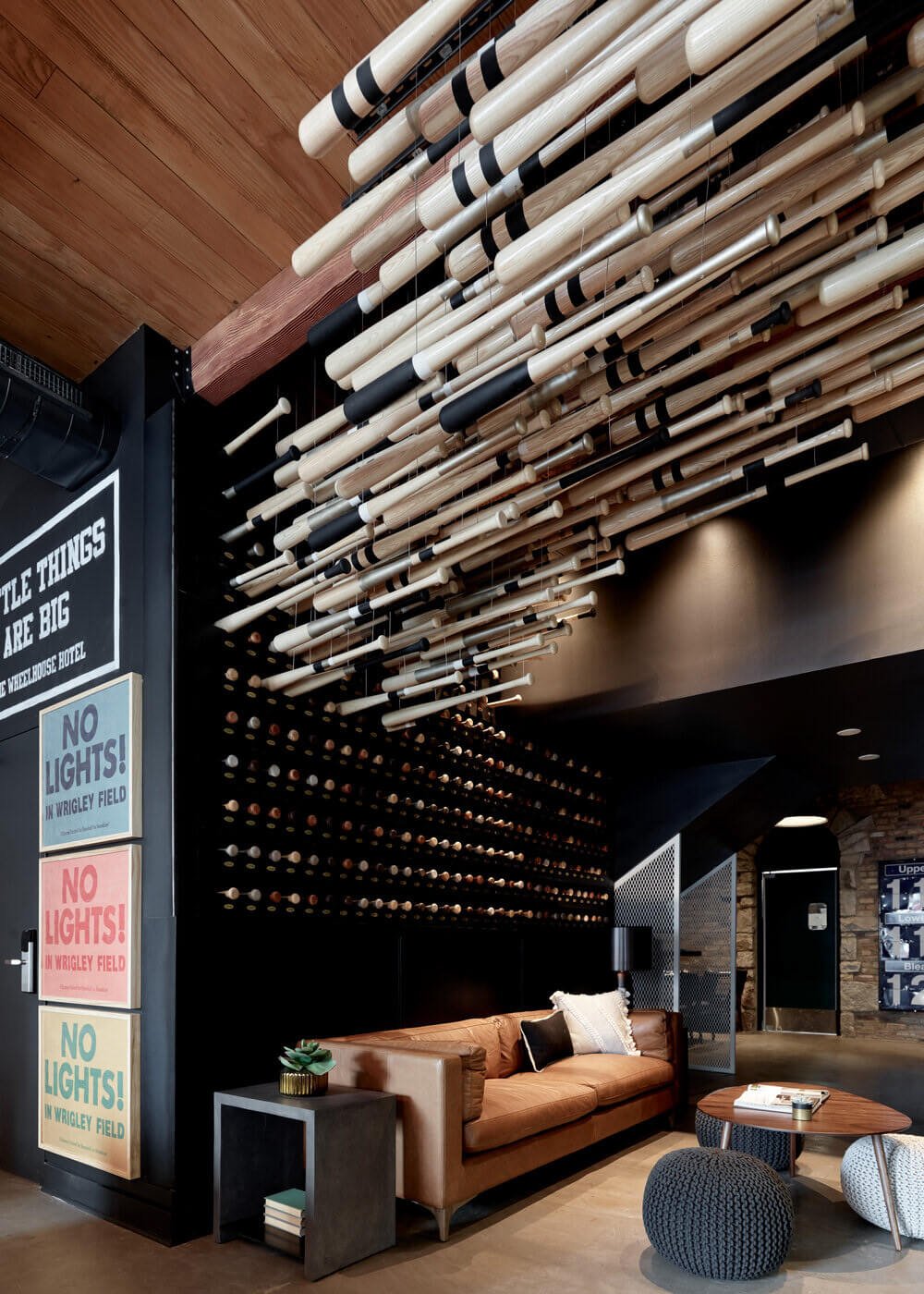 The 21-key hotel was converted from a 20th Century greystone building. Its award-winning, baseball-inspired interior design, was created by our partners from Curioso. Even if a baseball bat art installation flows from one end of the lobby to the other,